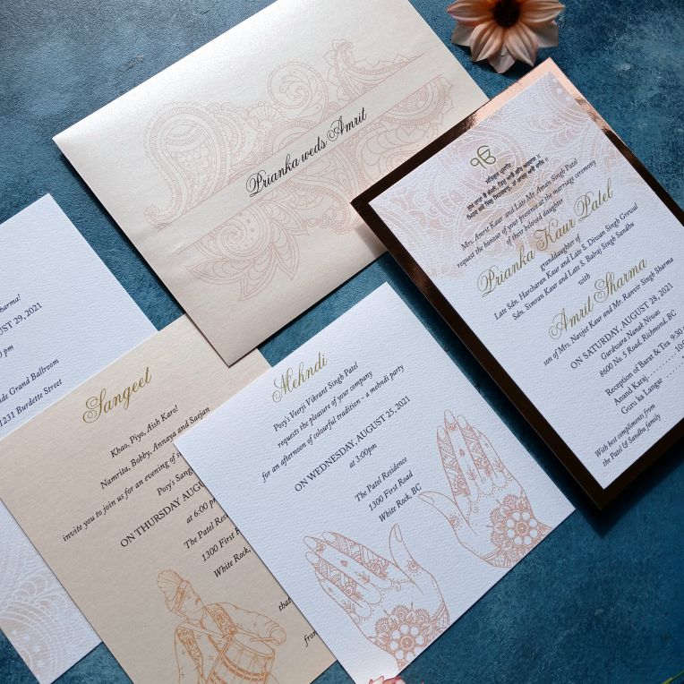 South Asian, 5 piece set with foil on invite